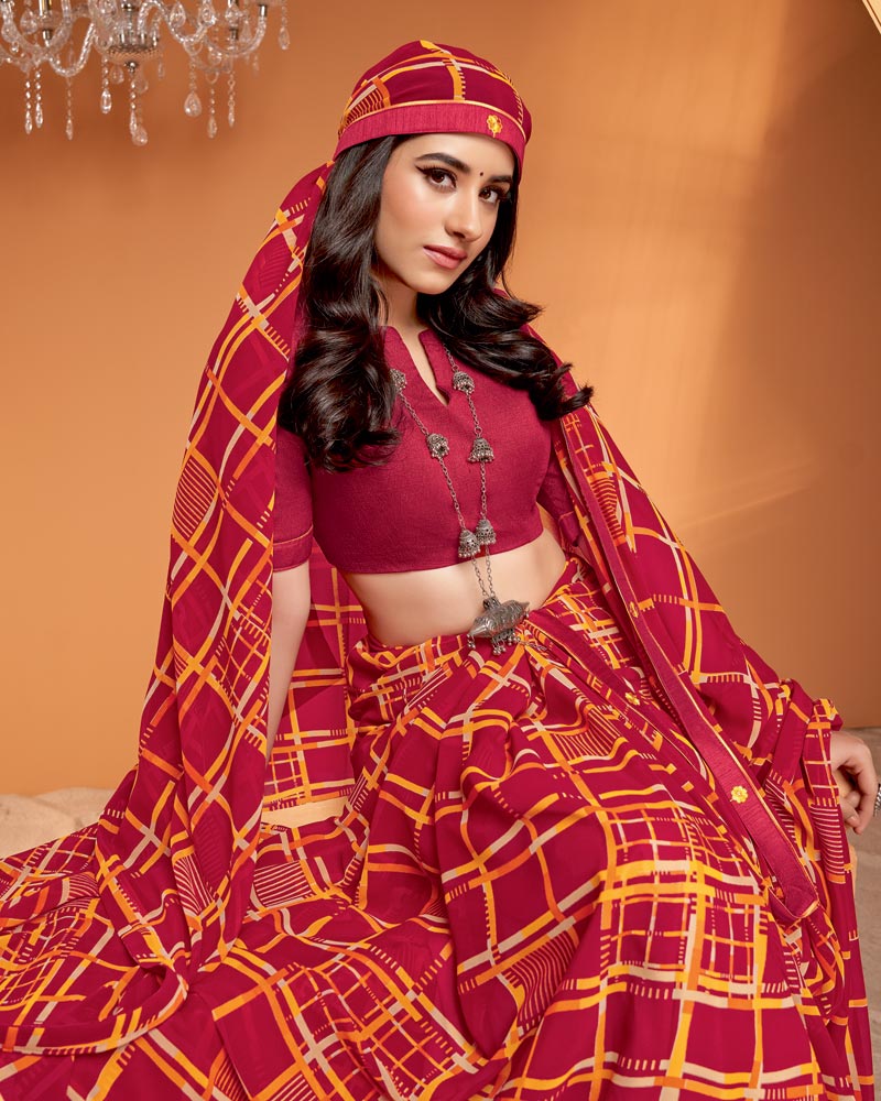 Vishal Prints Brick Red Printed Georgette Saree With Fancy Border
