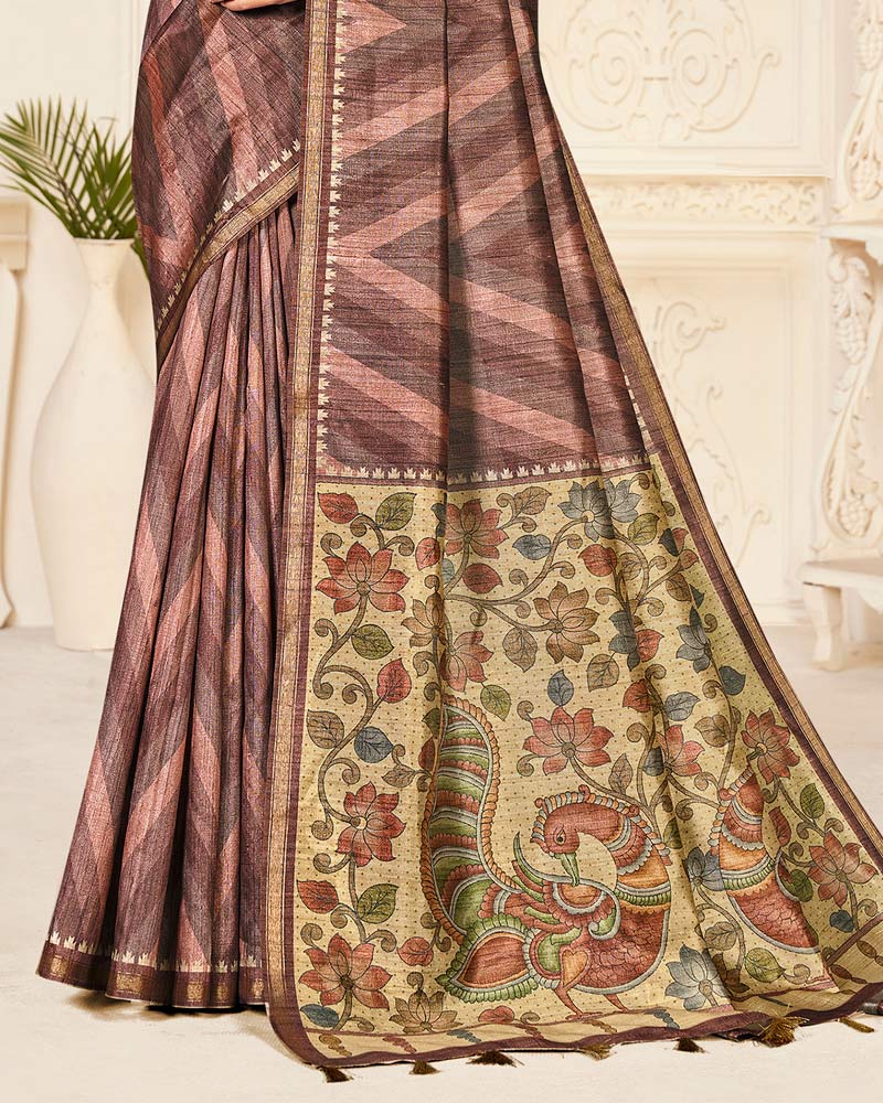Vishal Prints Brownish Pink Digital Printed Poly Cotton Saree With Tassel