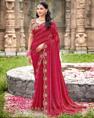 Vishal Prints Burgundy Designer Fancy Chiffon Saree With Diamond Work And Cut Work Embroidery Border