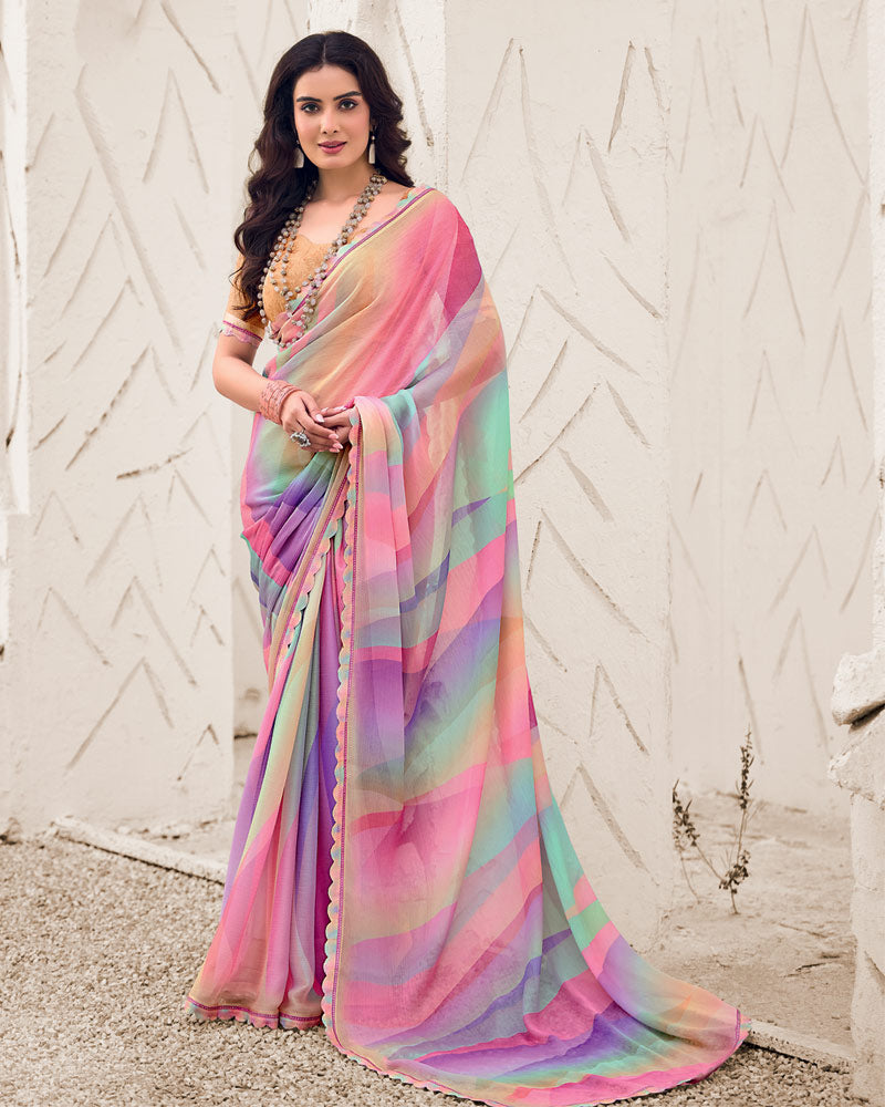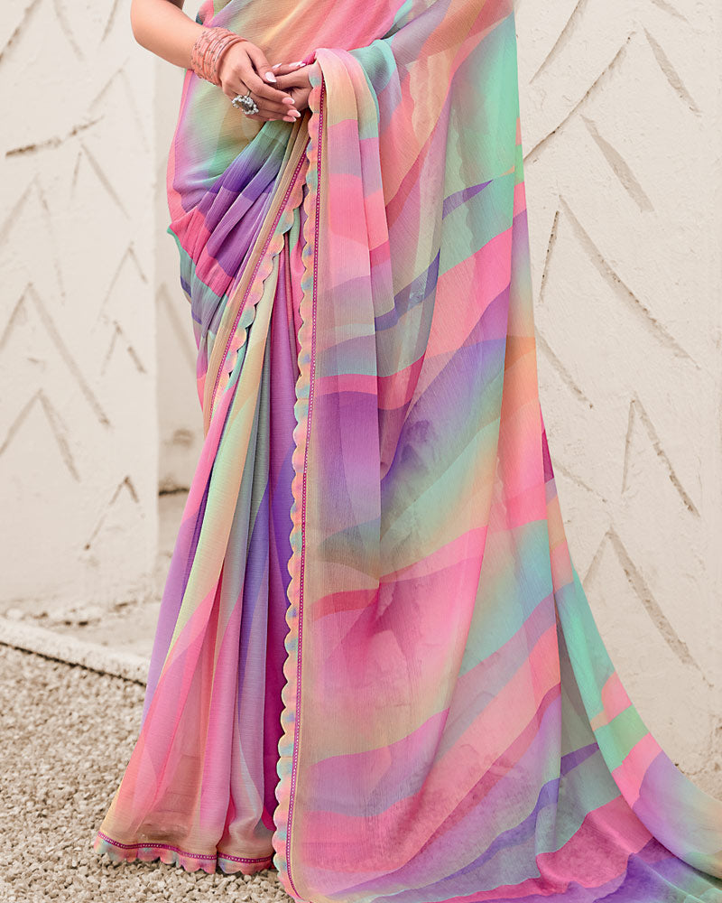 Vishal Prints Cadillac Pink Designer Fancy Chiffon Digital Print Saree With Cut Work Border