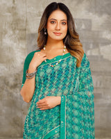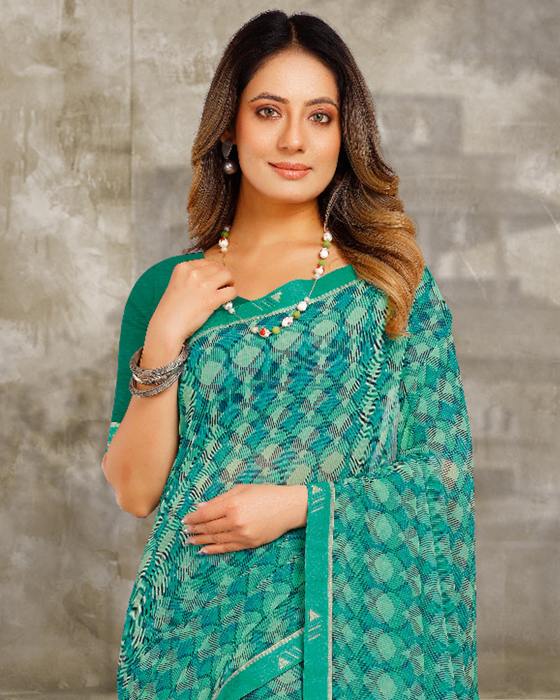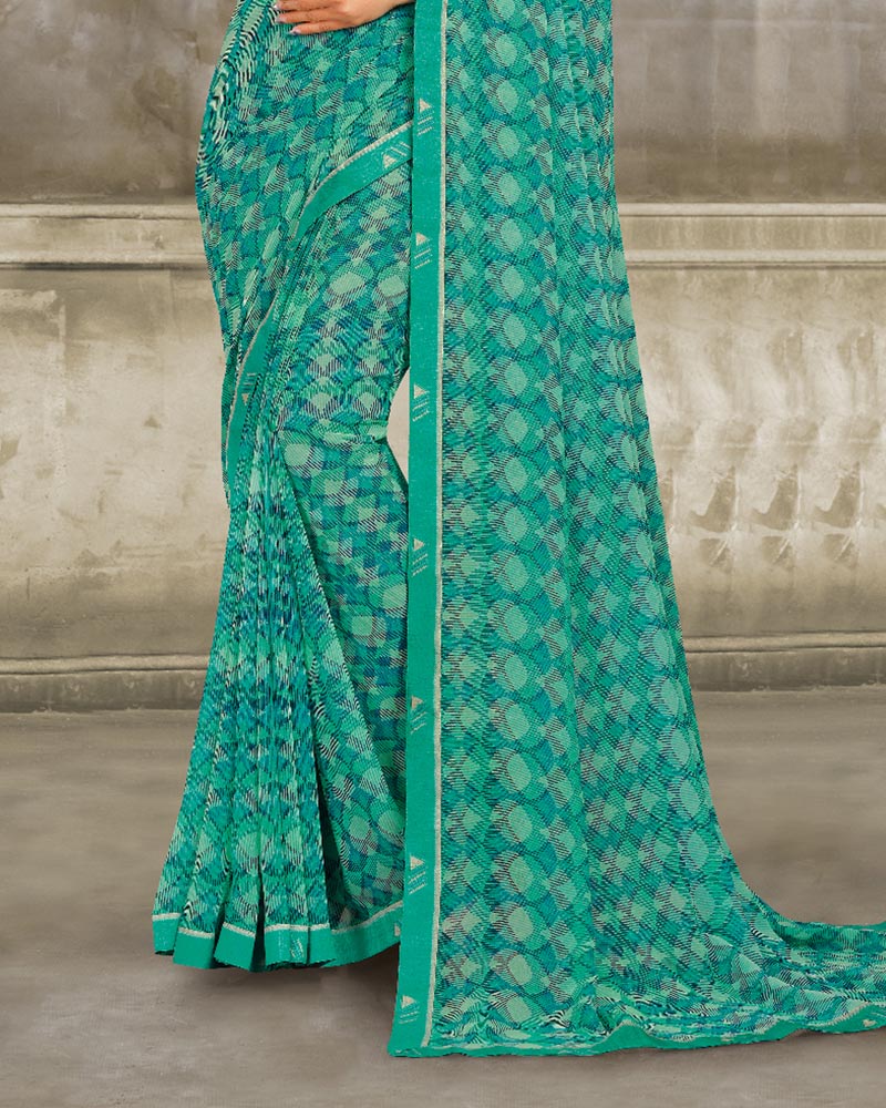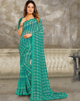Vishal Prints Dark Aqua Green Printed Georgette Saree With Fancy Border