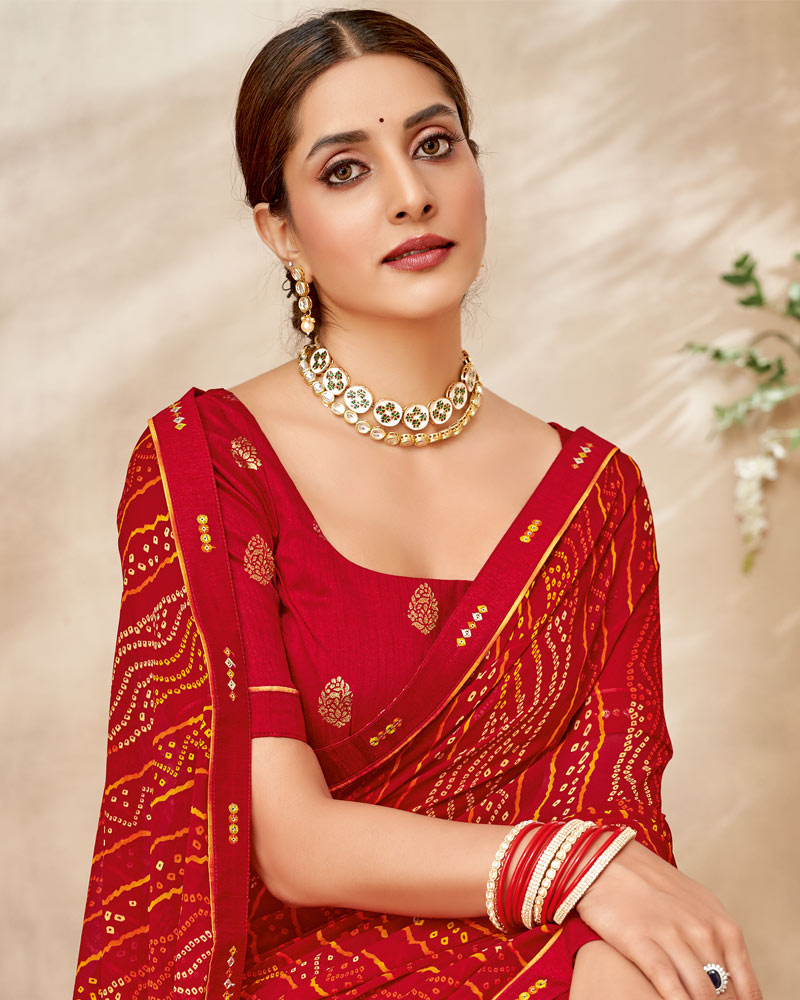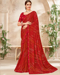 Vishal Prints Dark Red Printed Georgette Saree With Fancy Border
