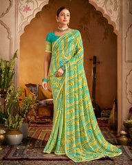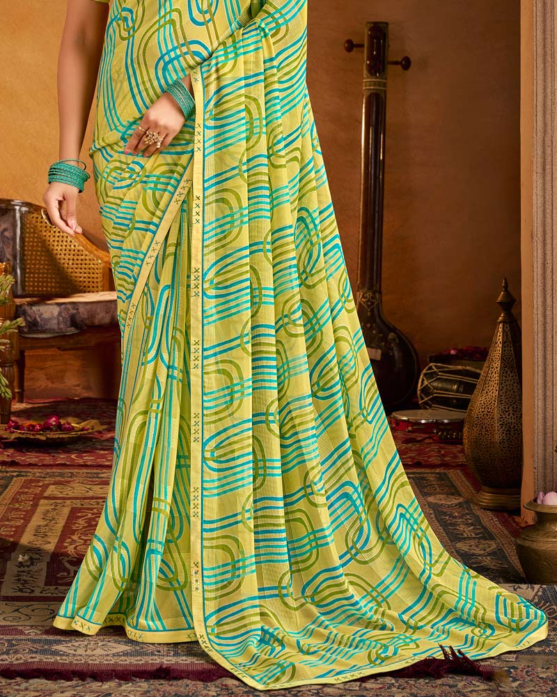 Vishal Prints Light Yellow Printed Patterned Chiffon Saree With Fancy Border