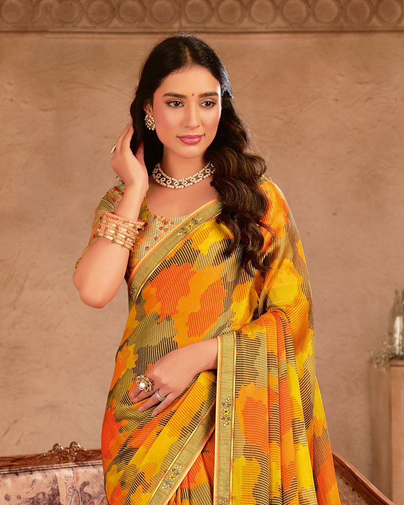 Vishal Prints Mango Printed Chiffon Saree With Fancy Border