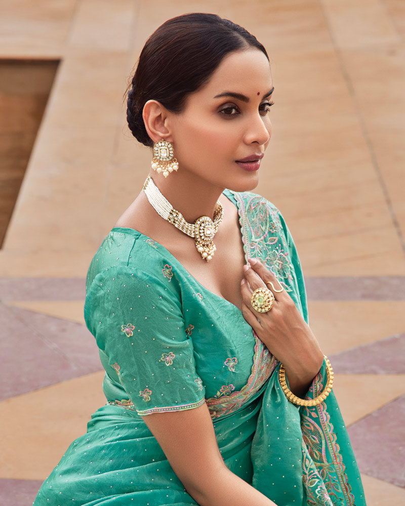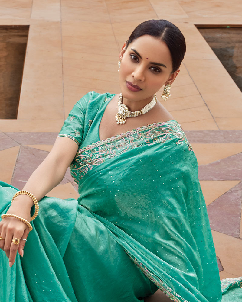 Collections: All Products,   Bridal Trousseau under 3k,   Designer Saree,   Embroidered Sarees Under ₹5,000 —End of Season Sale,   Exclusive Party Wear Saree,   Festive picks,   navratri,   New Arrivals,   Satin Saree,