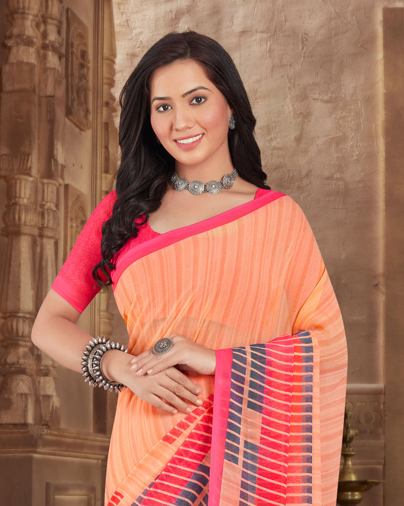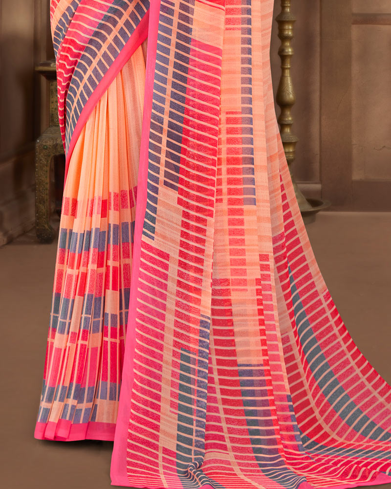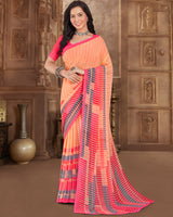 Vishal Prints Pastel Orange Printed Georgette Saree