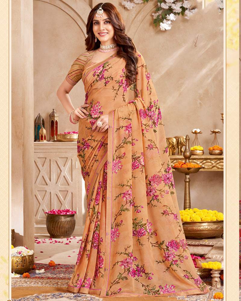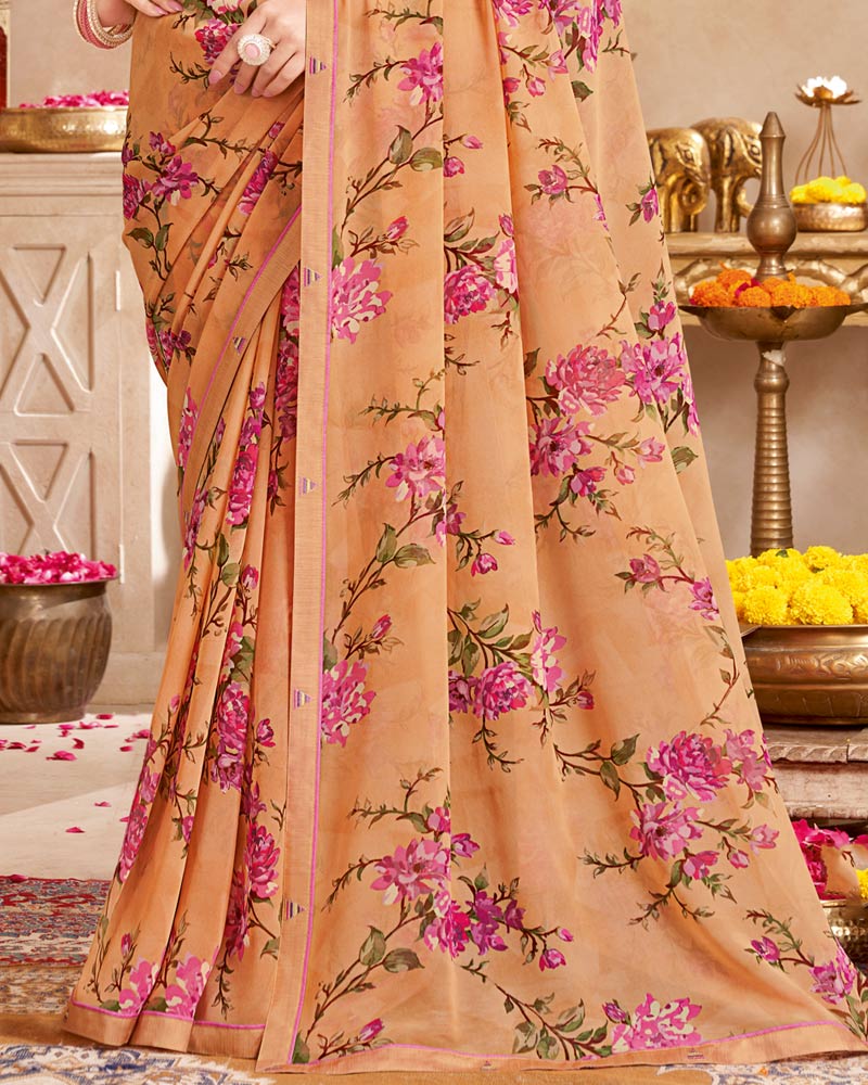 Vishal Prints Pastel Orange Printed Georgette Saree With Fancy Border