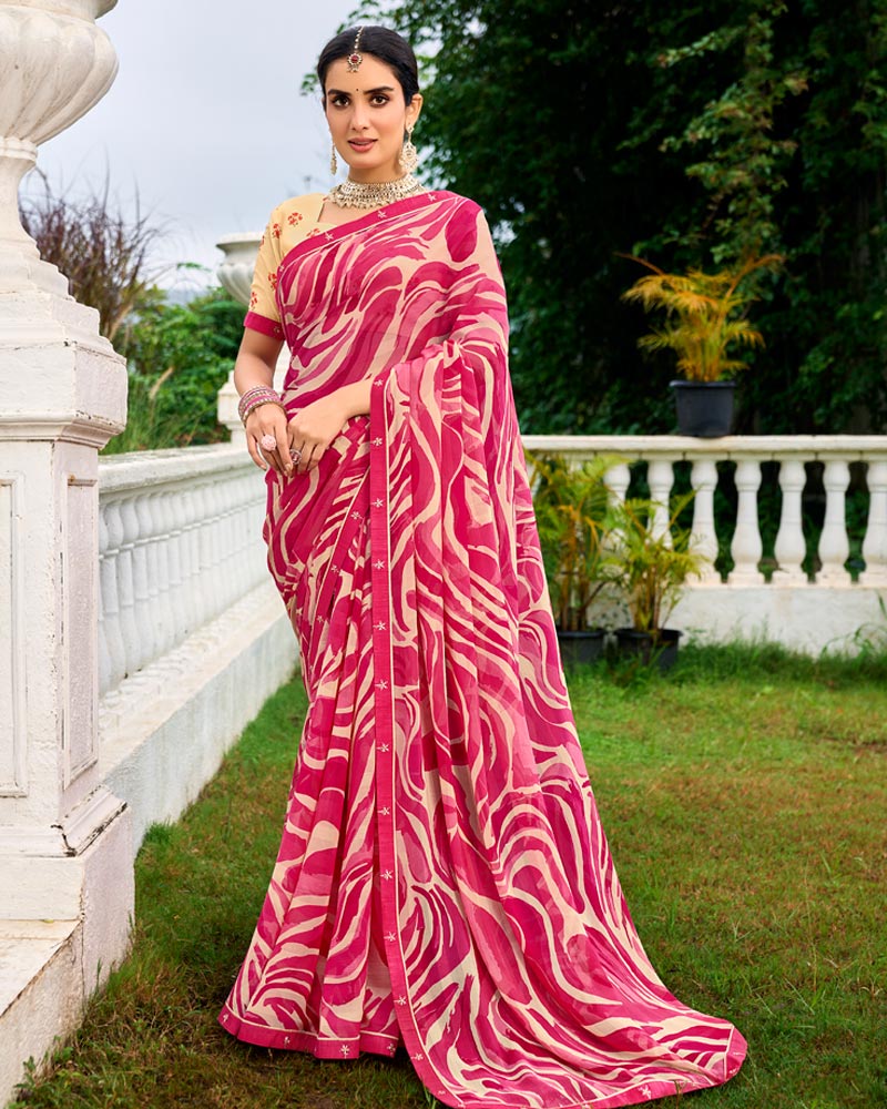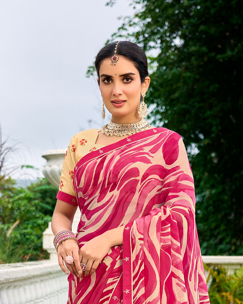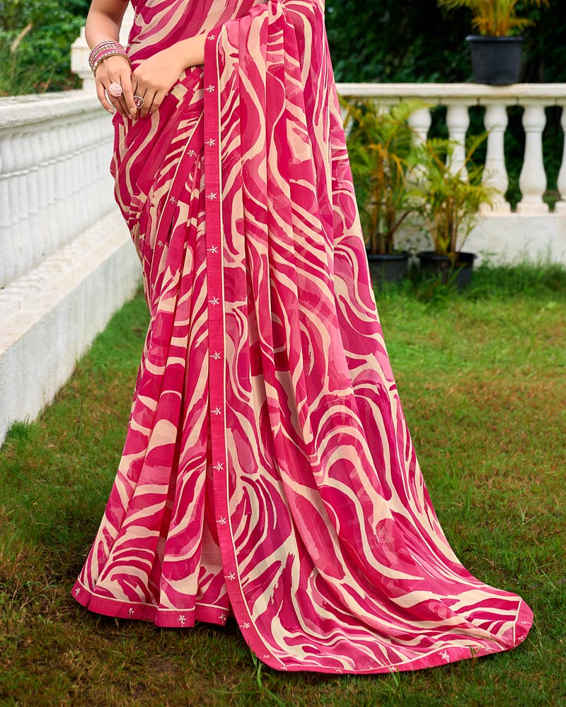 Vishal Prints Raspberry Pink Printed Chiffon Saree With Fancy Border