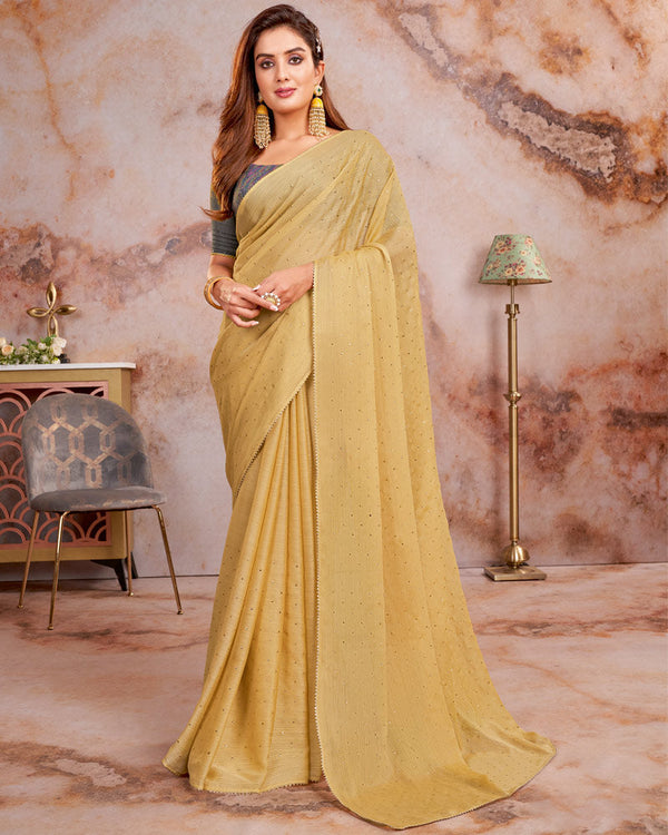 Vishal Prints Golden Yellow Printed Fancy Chiffon Bandhani Print Saree With Cut Work Diamond Border