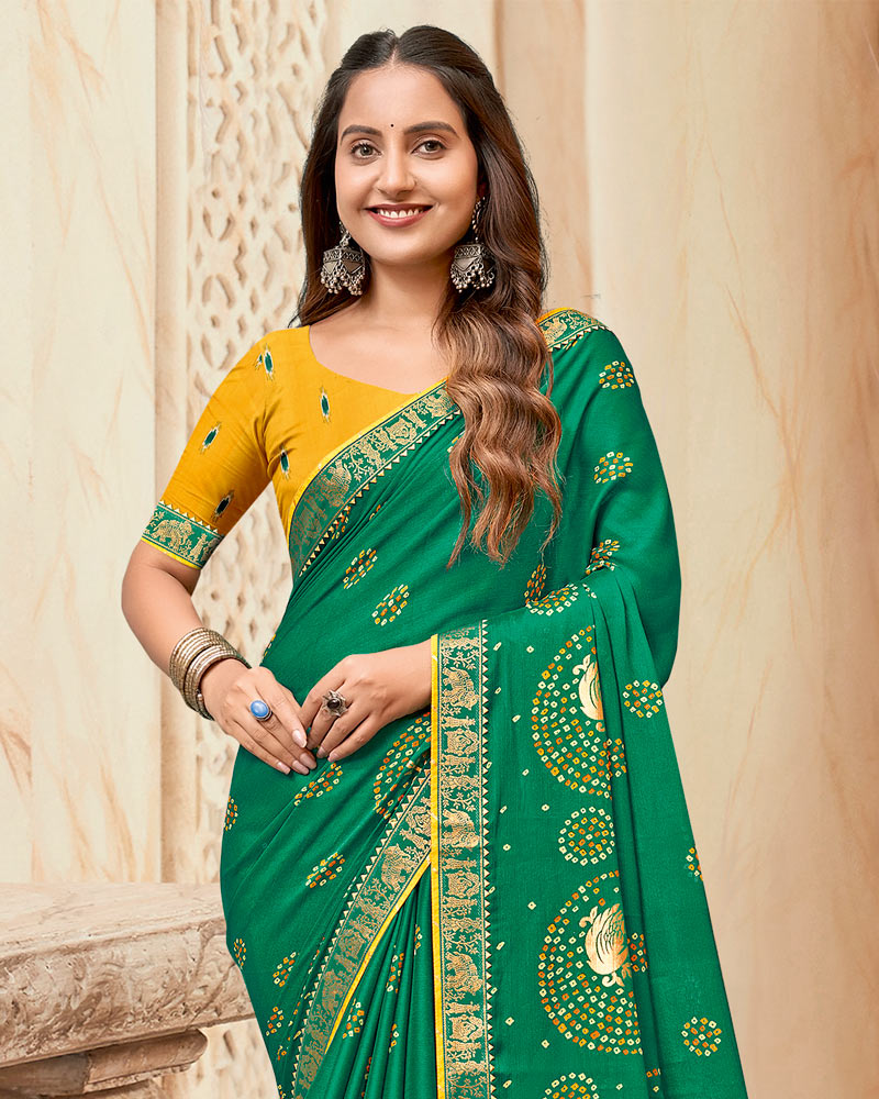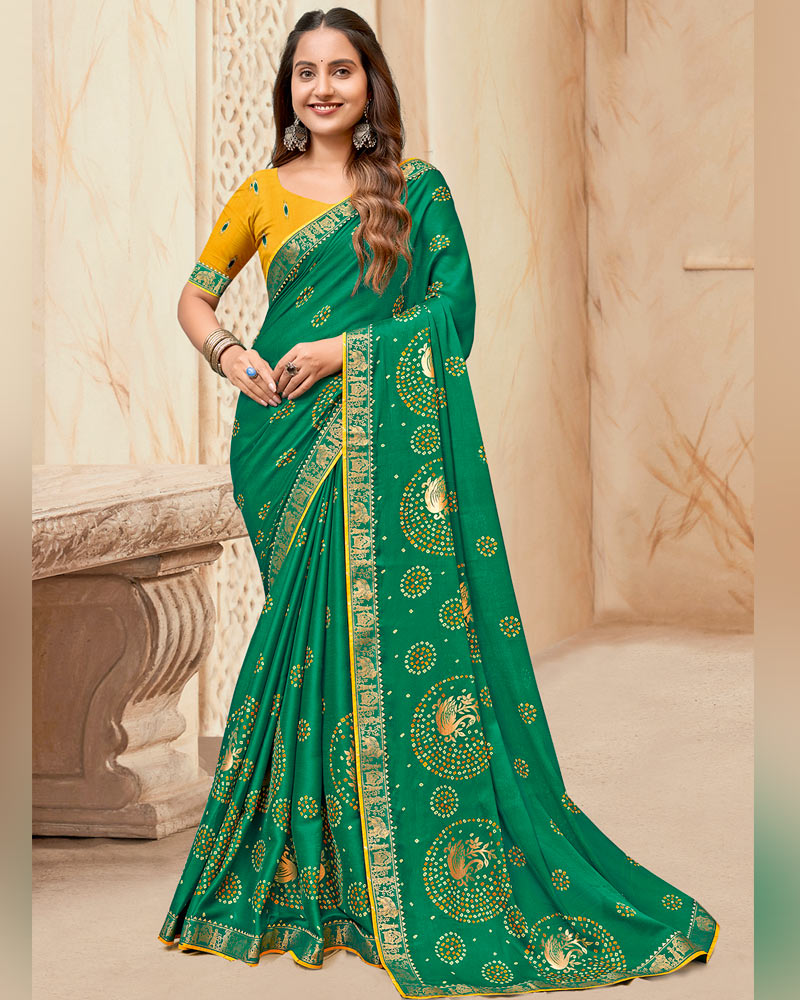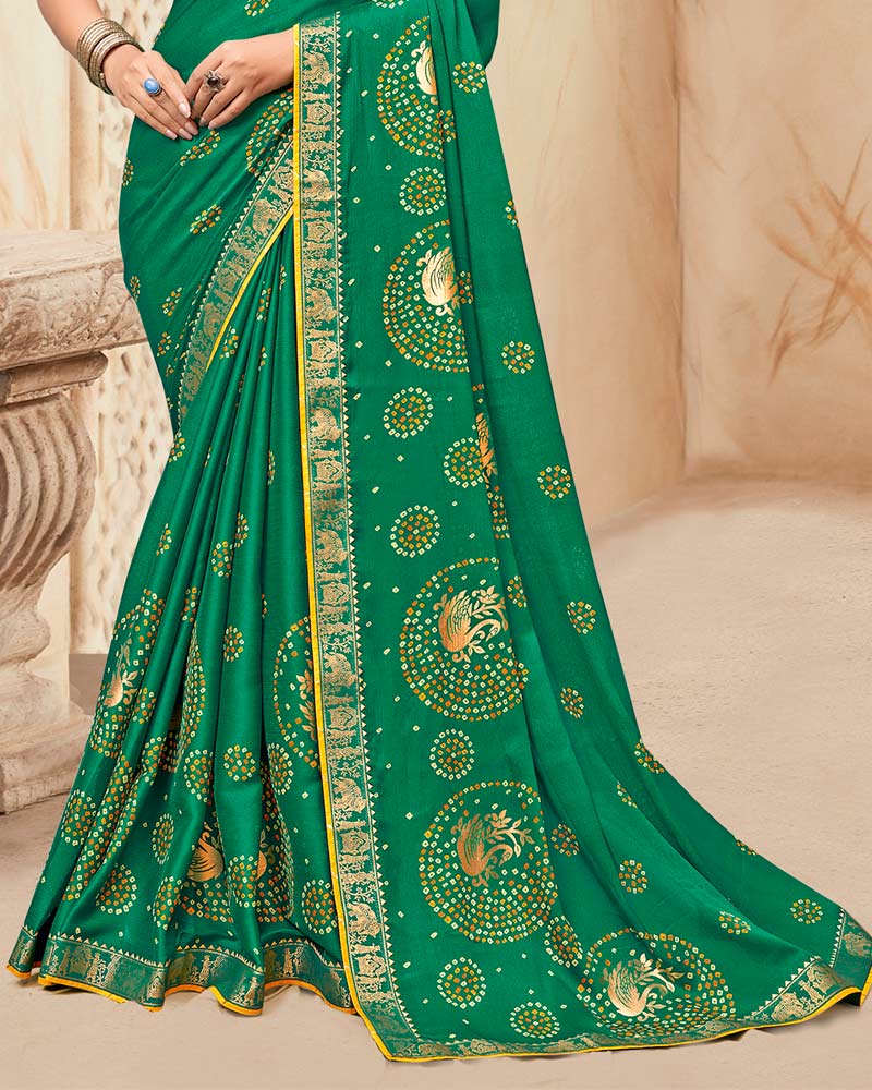 Vishal Prints Tropical Green Printed Chiffon Traditional Print Saree With Foil Print And Zari Border