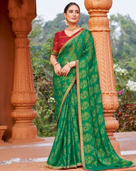 Vishal Prints Spring Green Printed Chiffon-Brasso Saree With Zari Border