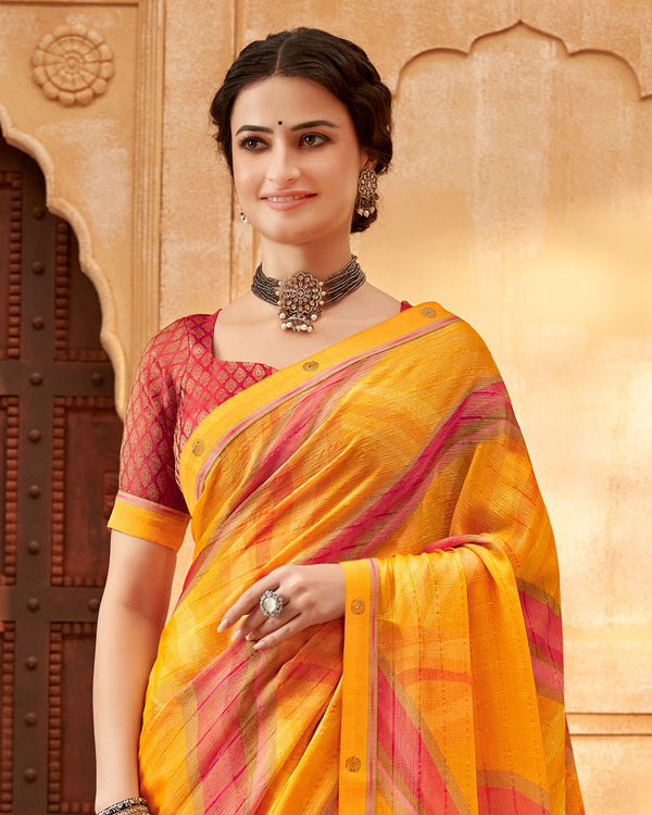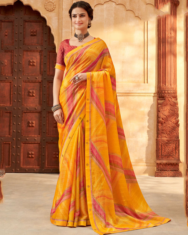 Vishal Prints Cherry Red Printed Brasso Saree With Zari BorderVishal Prints Cherry Red Printed Brasso Saree With Zari Border