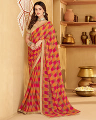 Vishal Prints Amaranth Pink Printed Georgette Saree With Fancy Border