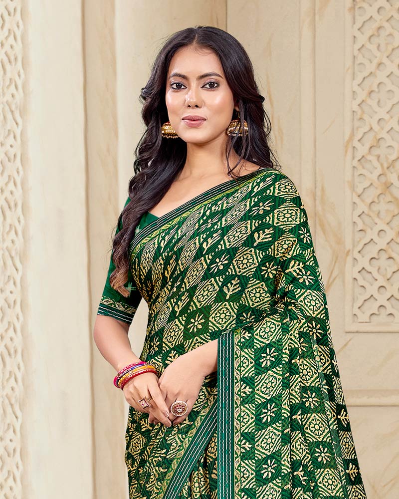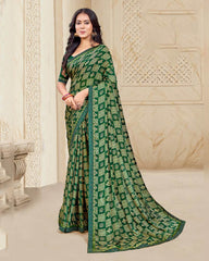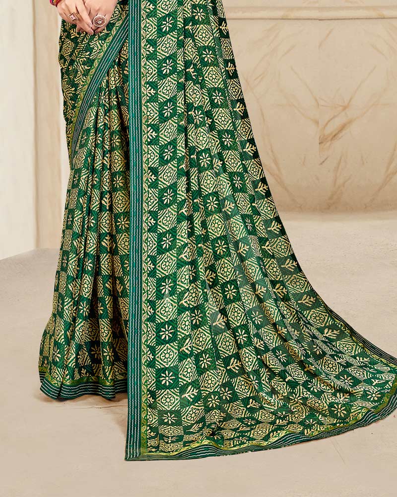 Vishal Prints Bottle Green Printed Chiffon Saree With Fancy Border