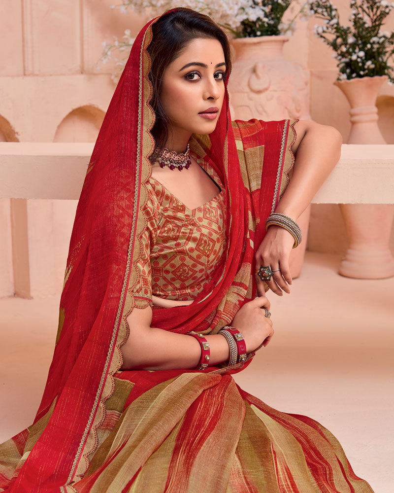 Vishal Prints Milano Red Printed Chiffon Saree With Fancy Cut Work Border