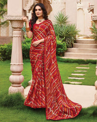Vishal Prints Shiraz Red Printed Fancy Chiffon Saree With Foil Print And Border