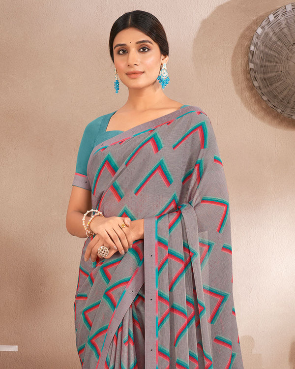 Vishal Prints Greyish Purple Printed Fancy Chiffon Saree With Border