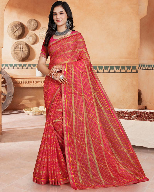Vishal Prints Raspberry Pink Printed Patterned Chiffon Saree With Fancy Border