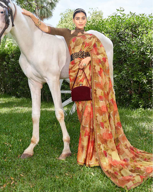 Vishal Prints Mustard Printed Patterned Chiffon Saree With Fancy Border