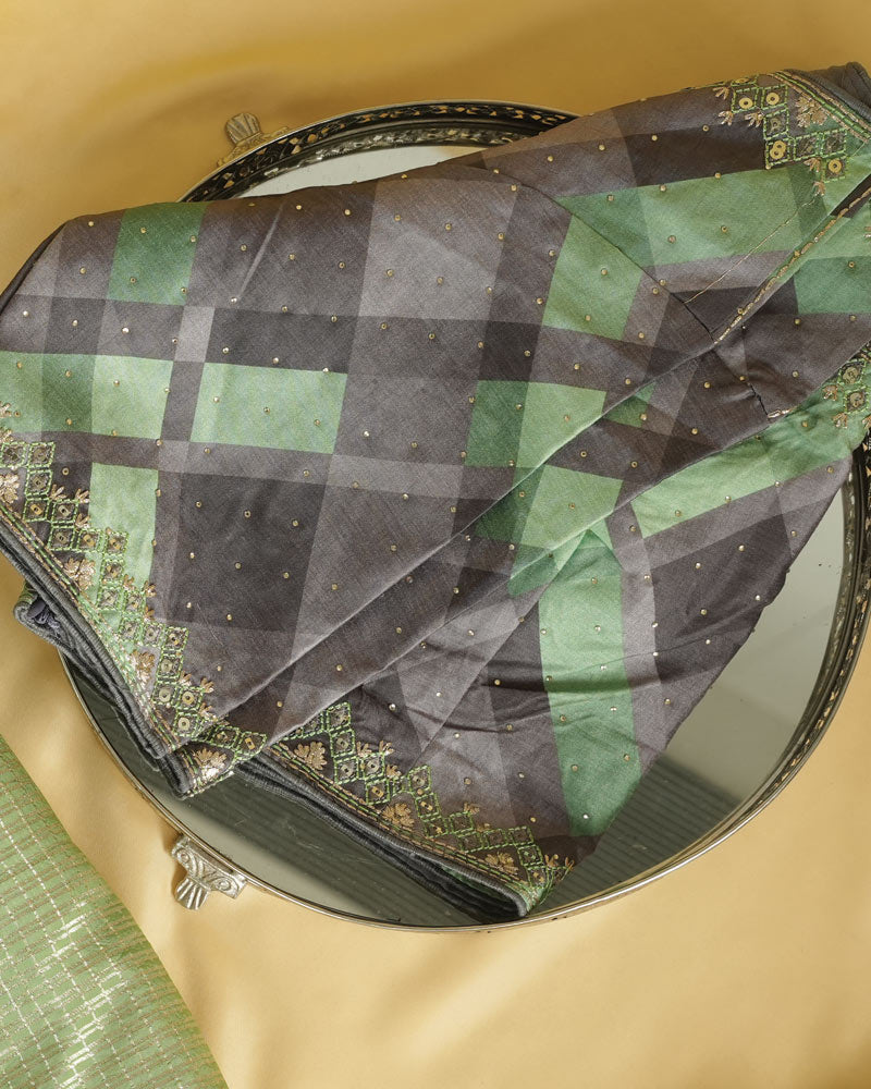 Pistachio Green Fancy Organza Saree With Viscose Zari Lining And Tassel