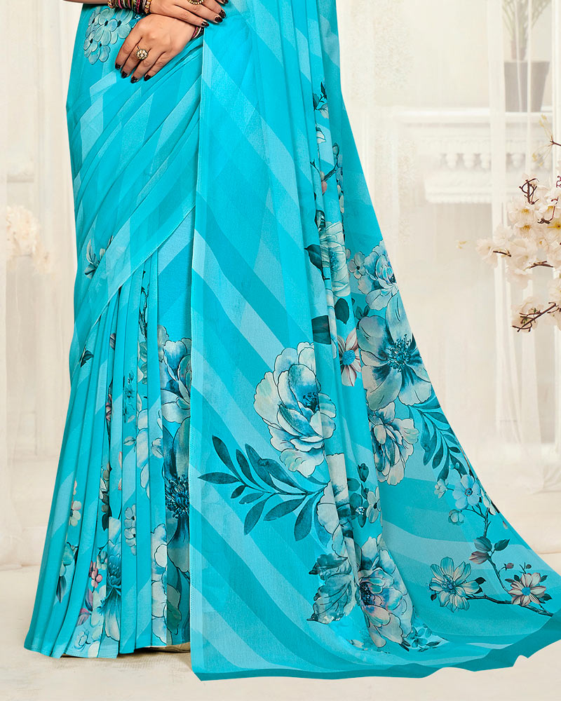 Vishal Prints Bright Sky Blue Digital Printed Georgette Saree
