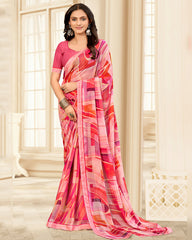 Vishal Prints Fushia Pink Printed Chiffon Saree With Fancy Border