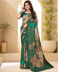 Vishal Prints Mineral Green Digital Print Premium Crepe Silk Saree