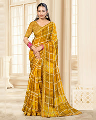 Vishal Prints Pale Yellow Printed Chiffon Saree With Fancy Border