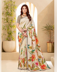Vishal Prints Royal Cream Digital Print Premium Crepe Silk Saree