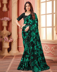 Vishal Prints Black And Jade Green Printed Georgette Saree With Fancy Border