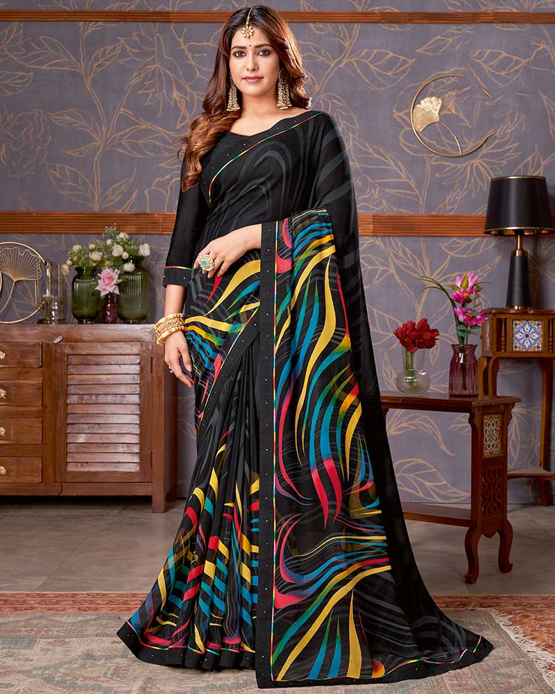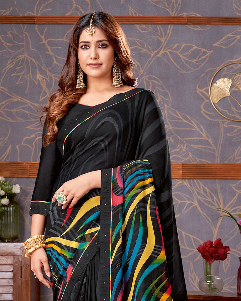 Vishal Prints Black And Multicolor Printed Georgette Saree With Fancy Border