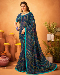 Vishal Prints Dark Navy Blue Printed Georgette Saree With Satin Piping