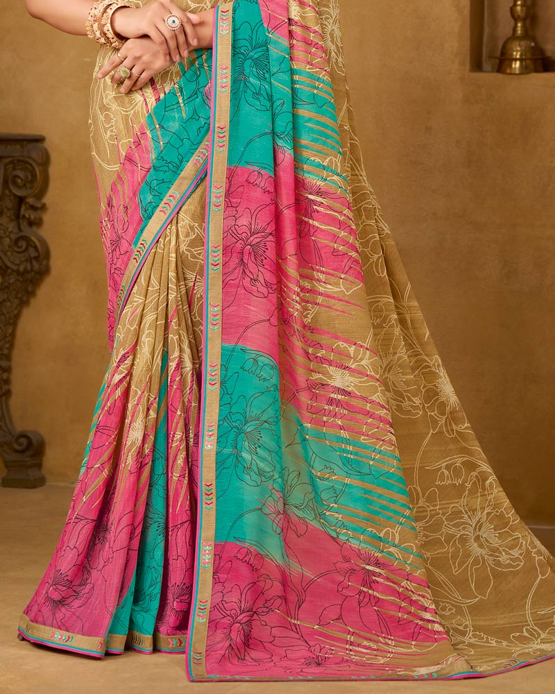 Vishal Prints French Beige Printed Patterened Georgette Saree With Fancy Border