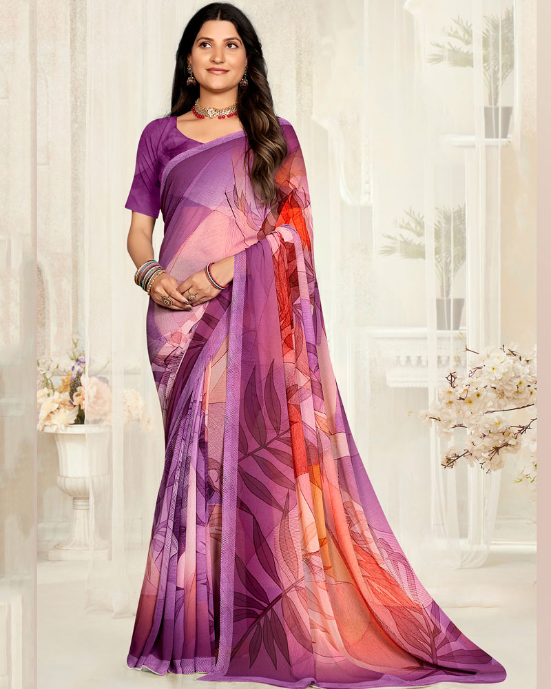 Vishal Prints Light Plum Digital Printed Georgette Saree