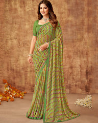 Vishal Prints Moss Green Printed Georgette Saree With Fancy Border