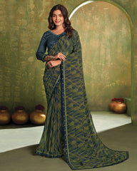 Vishal Prints Navy Blue Printed Georgette Saree With Fancy Border