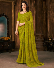 Vishal Prints Olive Green Printed Georgette Saree With Fancy Border
