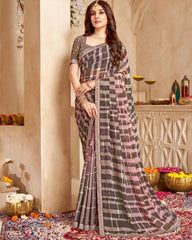 Vishal Prints Pale Taupe Printed Georgette Saree With Fancy Border
