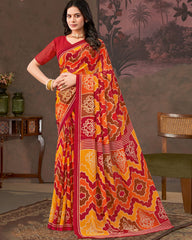 Vishal Prints Paprika Red And Carrot Orange Printed Georgette Saree