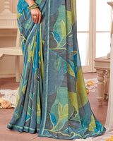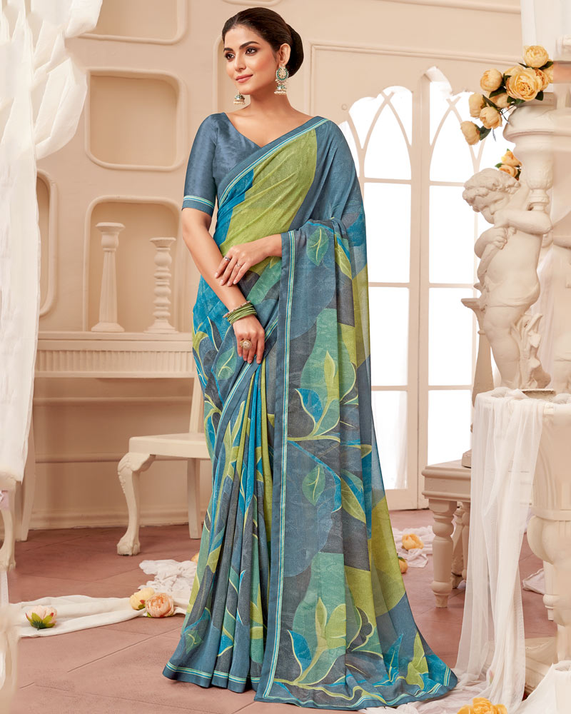 Vishal Prints Pastel Blue Printed Georgette Saree With Fancy Border