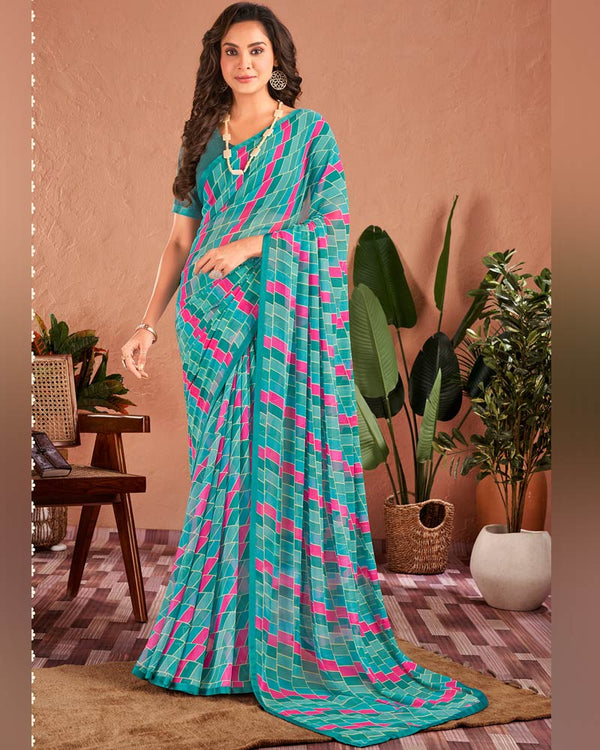 Vishal Prints Turquoise Blue Printed Georgette Saree With Fancy Border