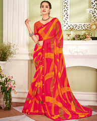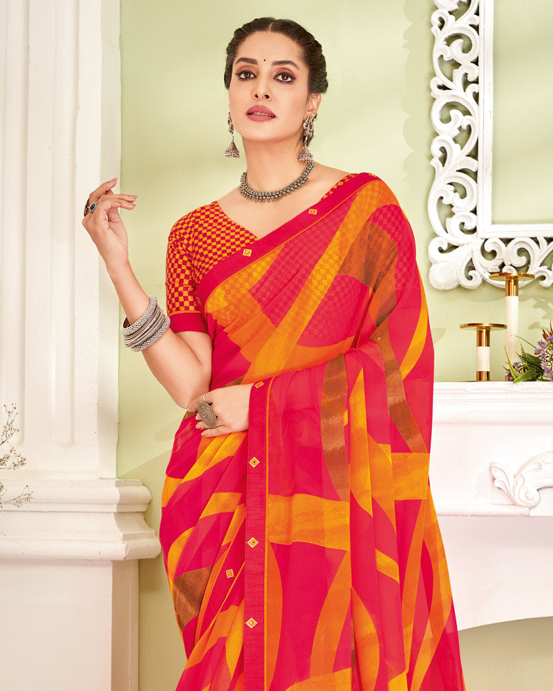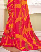 Vishal Prints Red Pink Printed Georgette Saree With Fancy Border