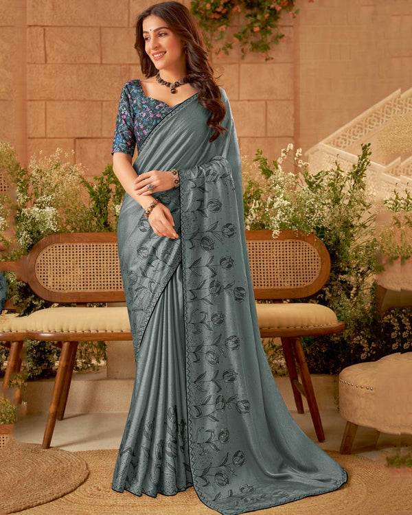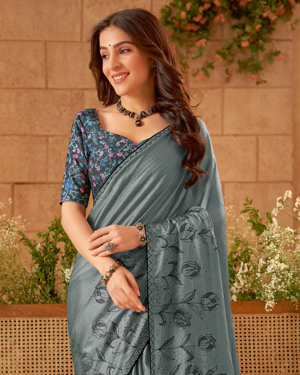 Want a saree that's both elegant and trendy? Look no further! Our designer fancy chiffon sarees are decorated with beautiful embroidery and tiny diamonds. The piping adds a modern touch - perfect for any event, big or small!