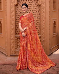 Vishal Prints Sunset Orange Printed Patterned Brasso Bandhani Print Saree With Fancy Border