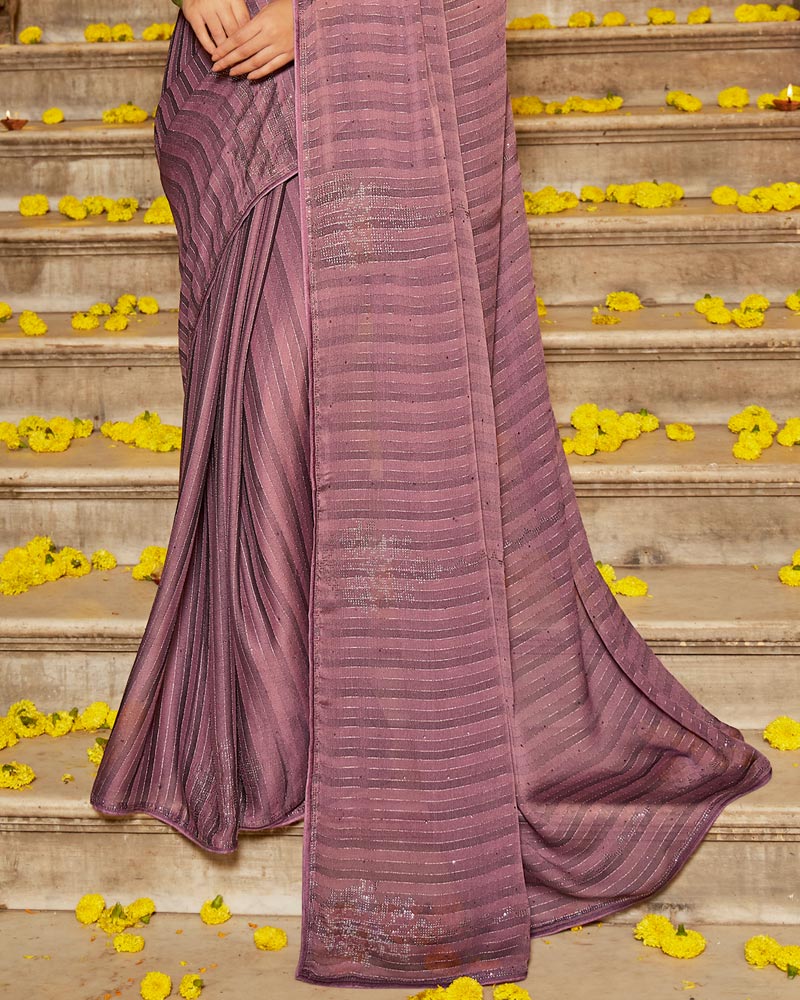 Vishal Prints Cannon Pink Designer Patterned Chiffon Saree With Embroidery And Diamond Work