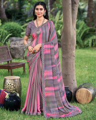 Vishal Prints Venus Grey Fancy Chiffon Digital Print Saree With Border