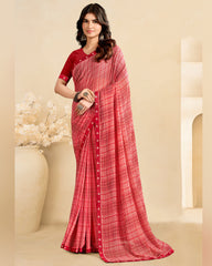 Vishal Prints Dusty Rose Pink Printed Georgette Saree With Fancy Border