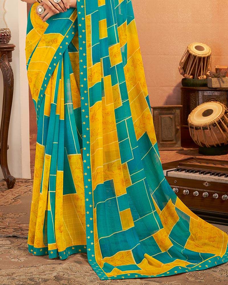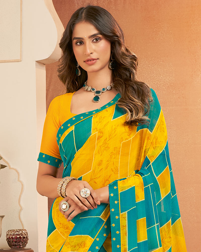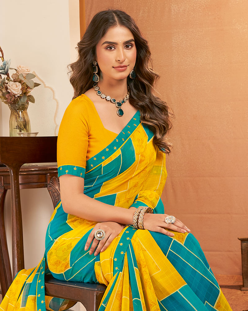 Vishal Prints Golden Yellow Printed Georgette Saree With Fancy Border