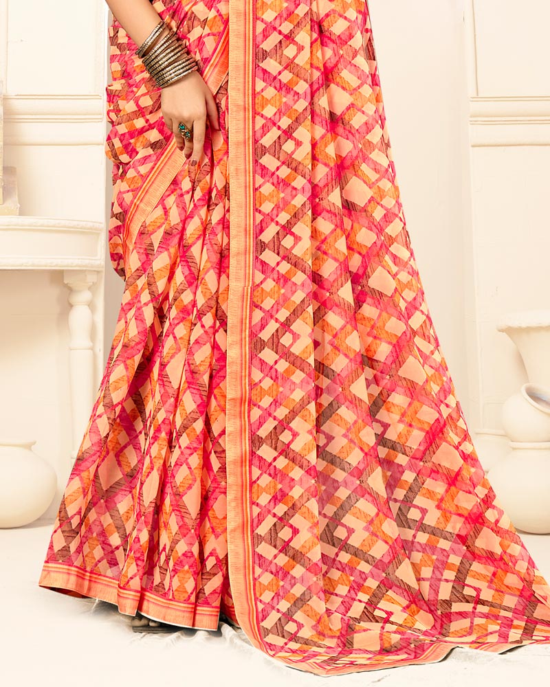 Vishal Prints Peachy Orange Printed Georgette Saree With Fancy Border