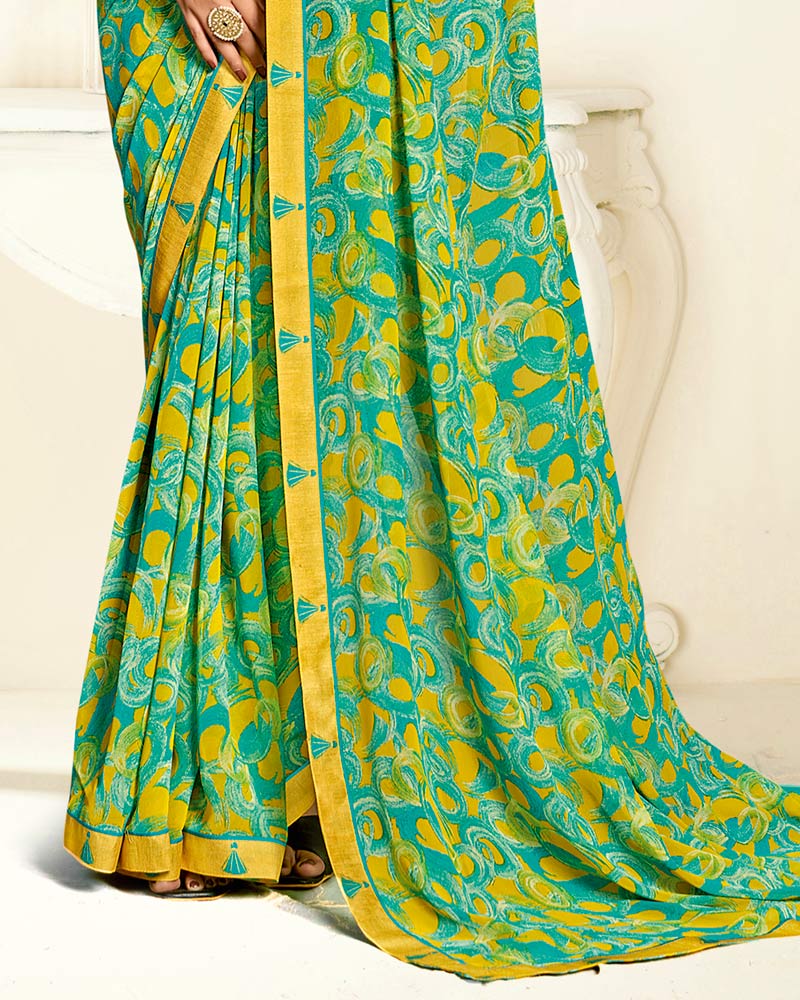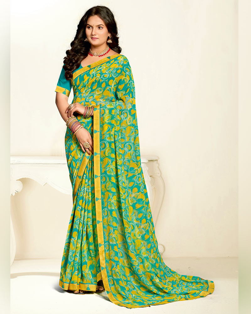 Vishal Prints Persian Green Printed Georgette Saree With Fancy Border